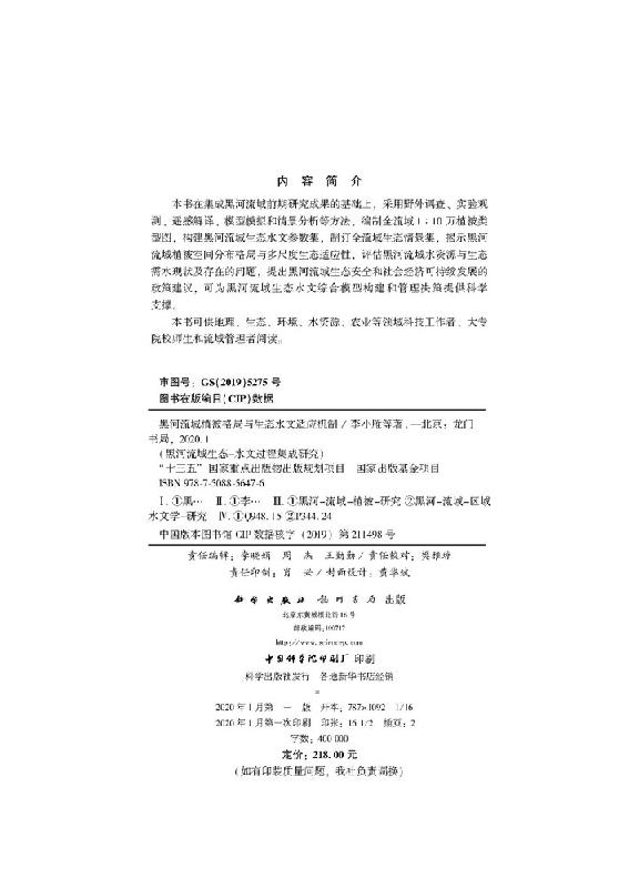 基金项目 黑河流域植被格局与生态水文适应机制 规划项目国家出版 物出版 李小雁等 黑河流域生态水文过程集成研究十三五国家重点出版