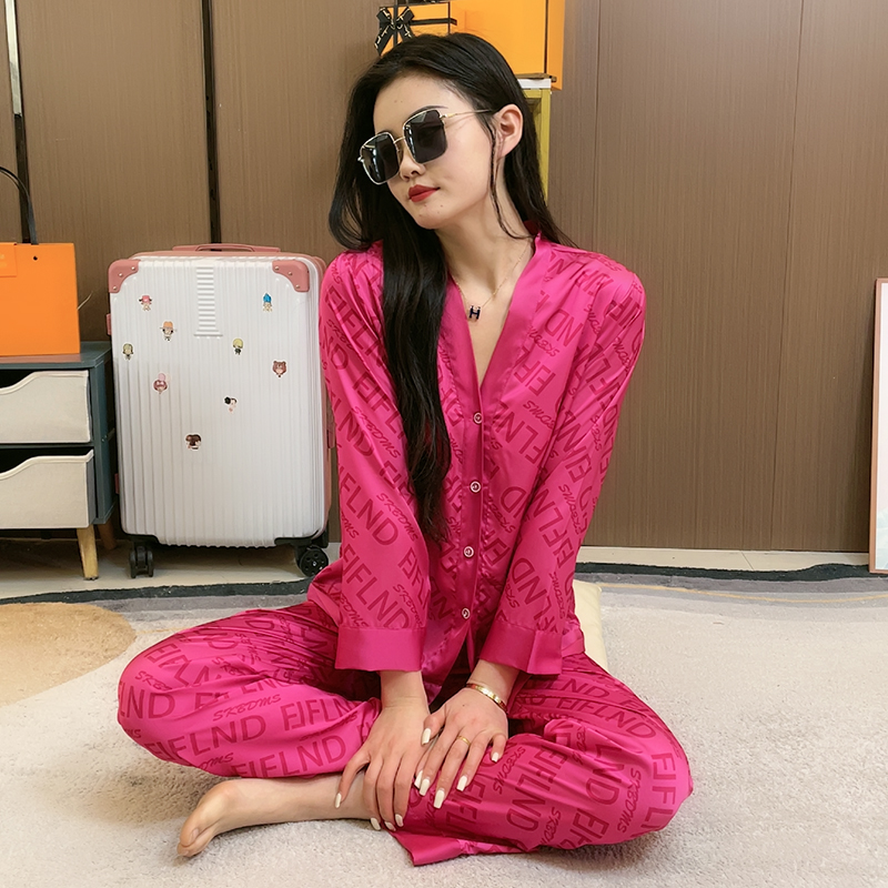 高级感红色两件套夏 2025年新款 睡衣女士春秋季 冰丝纯色家居服套装