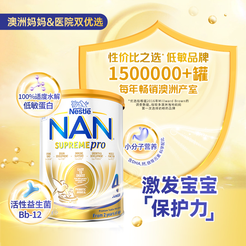 新国标 儿童奶粉850gx1罐 雀巢超启能恩4段部分水解奶粉