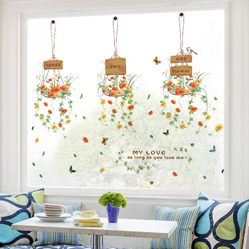 卧室床头上衣柜门贴画大白墙面3d立体吊饰盆栽吊顶自粘遮丑墙贴纸