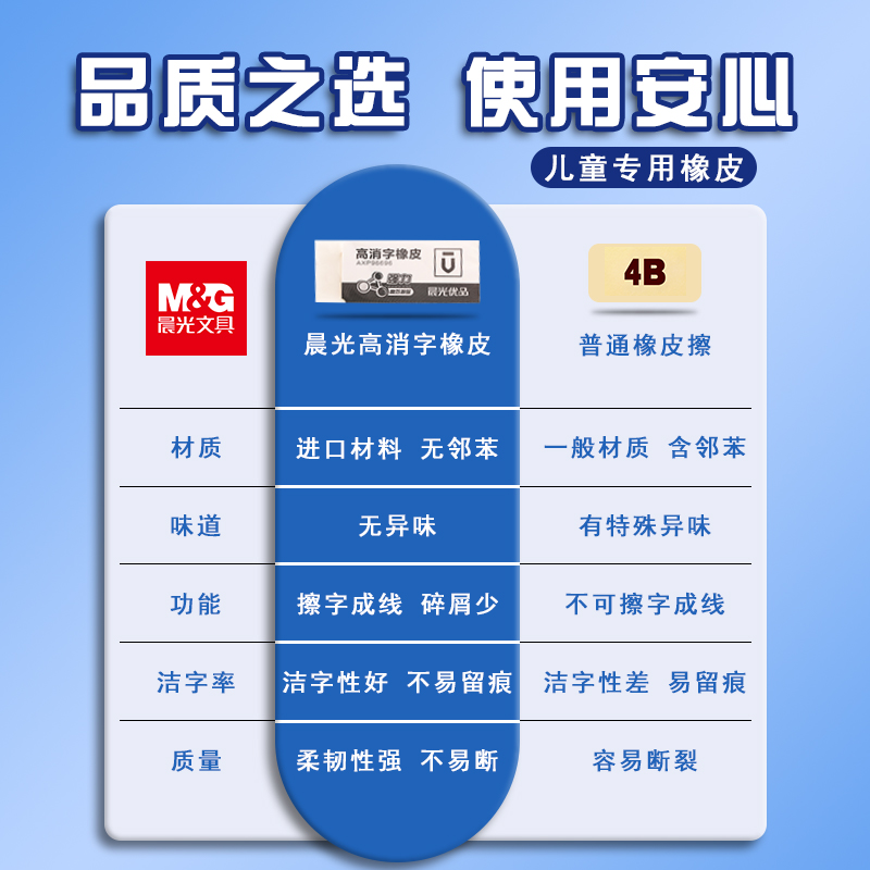 晨光4b美术橡皮擦少屑不易留痕小学生擦得干净像皮擦字成线考试象皮铅笔学生专用儿童安全无毒美术生绘图素描