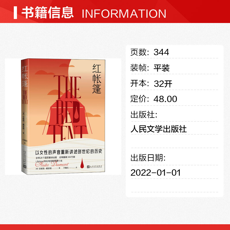 图书籍 社 著 美国 美洲文学小说文学 译 安妮塔·戴蒙德 于晓红 人民文学出版 红帐篷 新华书店正版 美
