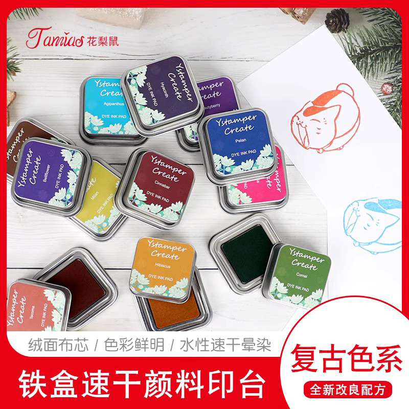 花梨鼠国产复古小铁盒速干印台 印泥橡皮章手账印章上色好搭档diy美术生手账专用印泥印台工具