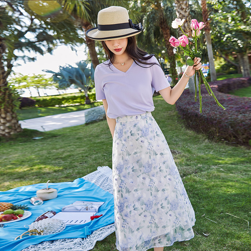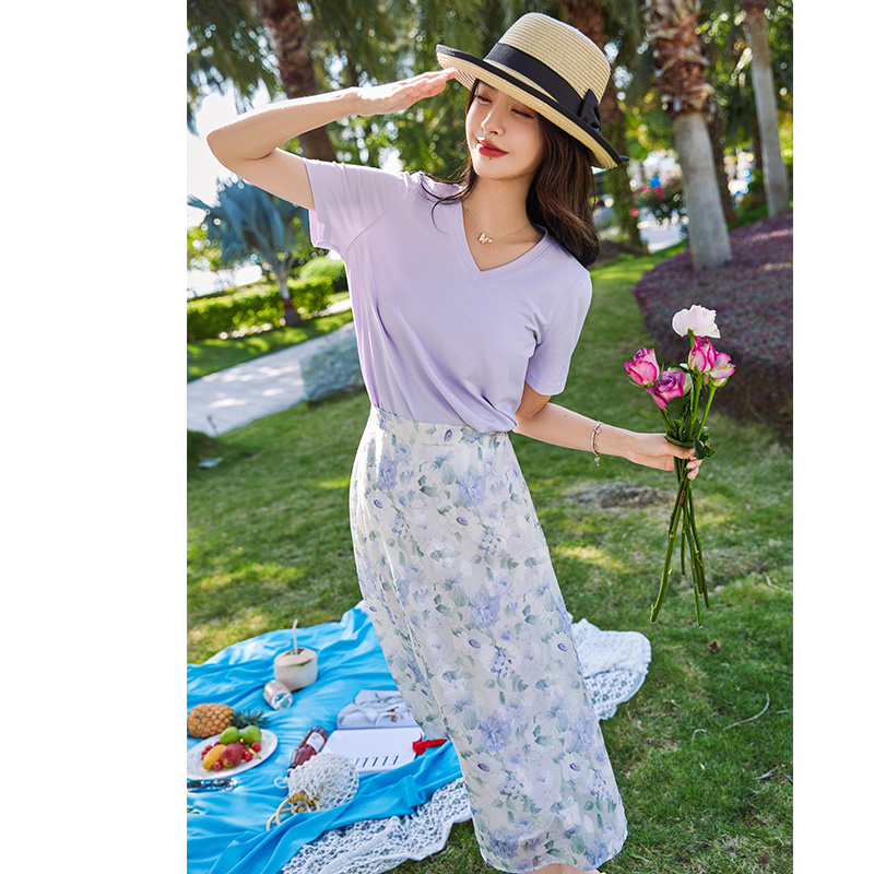 v领简约t恤甜飒风女装 锁骨甜辣上衣 奶甜别致设计感别致高级感法式
