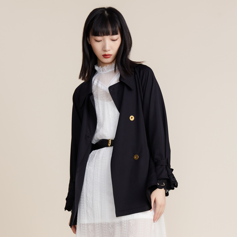 小个子翻领通勤百搭上衣 新款 秋水伊人气质短款 风衣外套女2025秋装