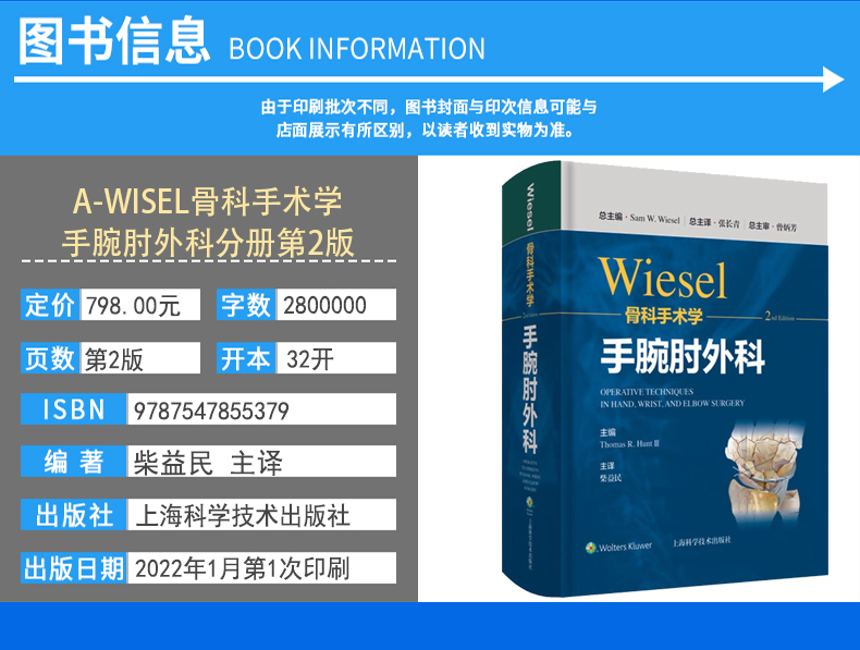 第2二版 柴益民主译 骨科手术技术精髓佳作 社 手腕肘外科分册 上海科学技术出版 9787547855379 WISEL骨科手术学