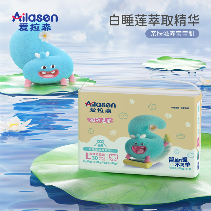 男女宝宝尿不湿尿布 婴儿纸尿裤 爱拉森微孔透爽成长裤 轻薄透气夏季