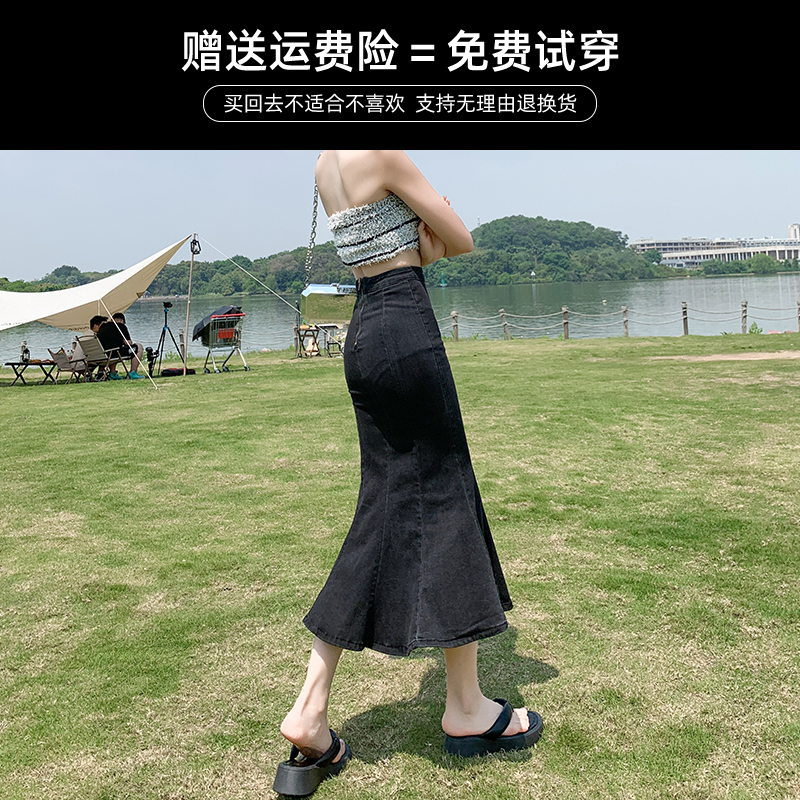 森柔牛仔 森马牛仔半身裙女高腰开叉显腿长春复古毛边直筒裙个性