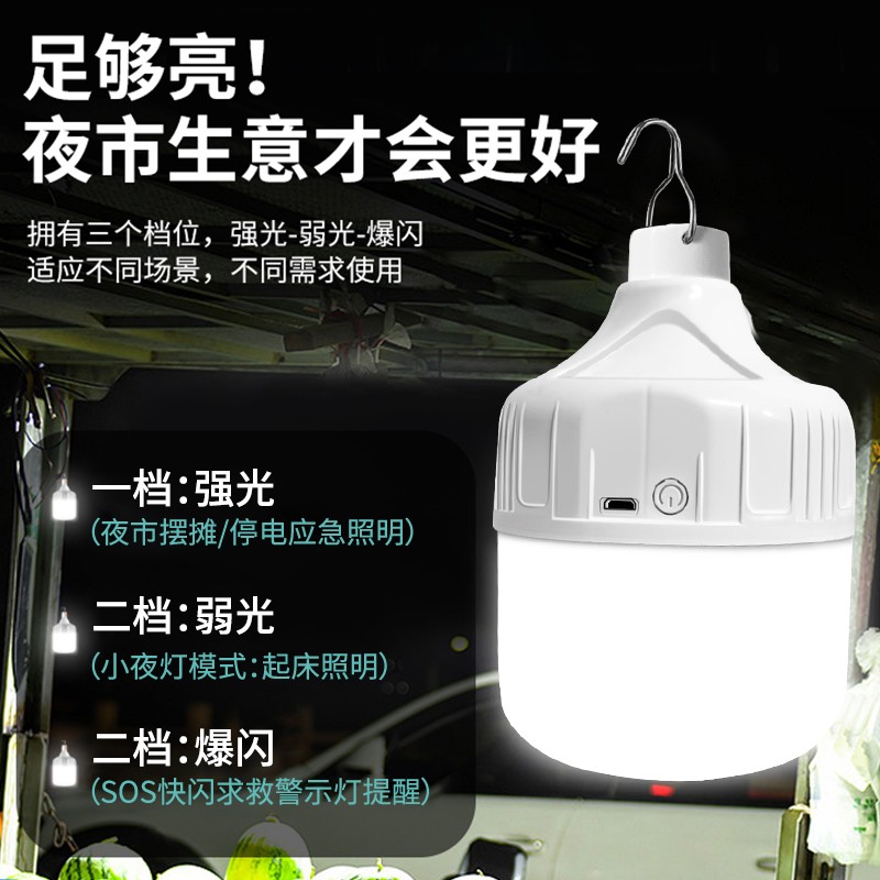 LED充电灯泡家用移动式 夜市摆摊地摊照明超长续航应急户外露营灯