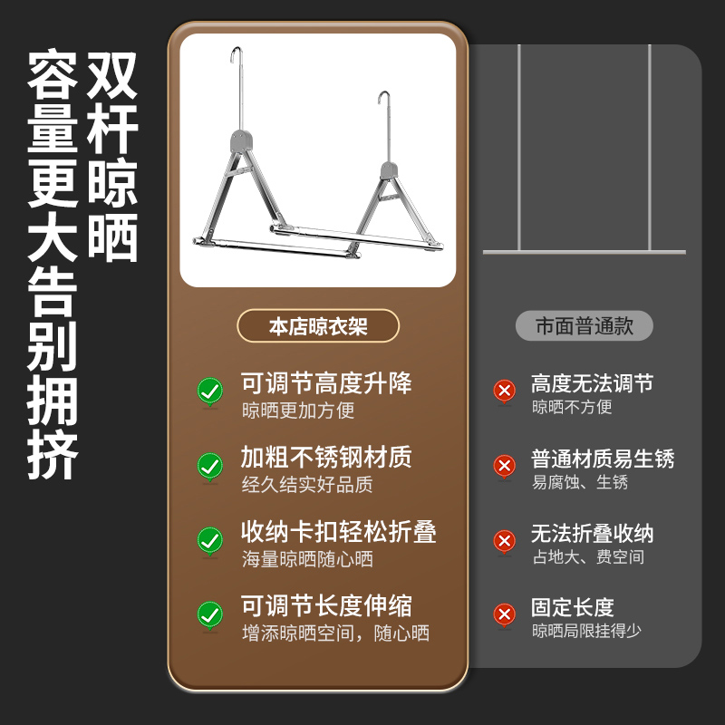 双层晾衣架升降收纳架双杆式 置地卧室阳台简易晾晒衣架制服带轮子