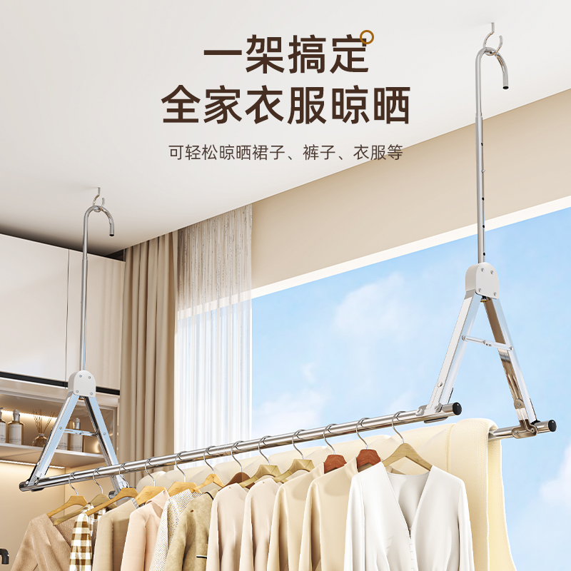 伸缩衣架阳台晾衣晾晒落地家用晾衣架室内卧室置地 升降晾晒衣架