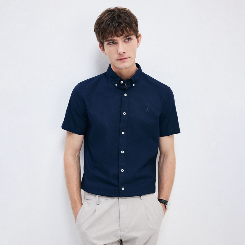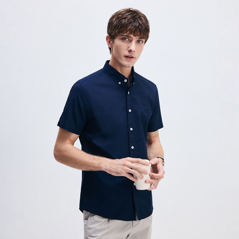 衬衫 通勤短袖 男 25年夏季 GXG男装 热卖 黑色斜纹面料休闲宽松时尚