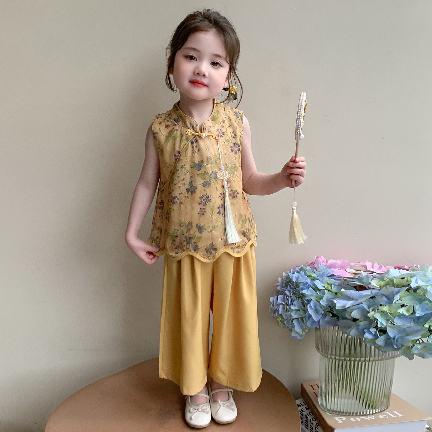 两件套 甜美碎花吊带裙叠穿内搭上衣花边阔腿裤 森系套装 女早秋新款