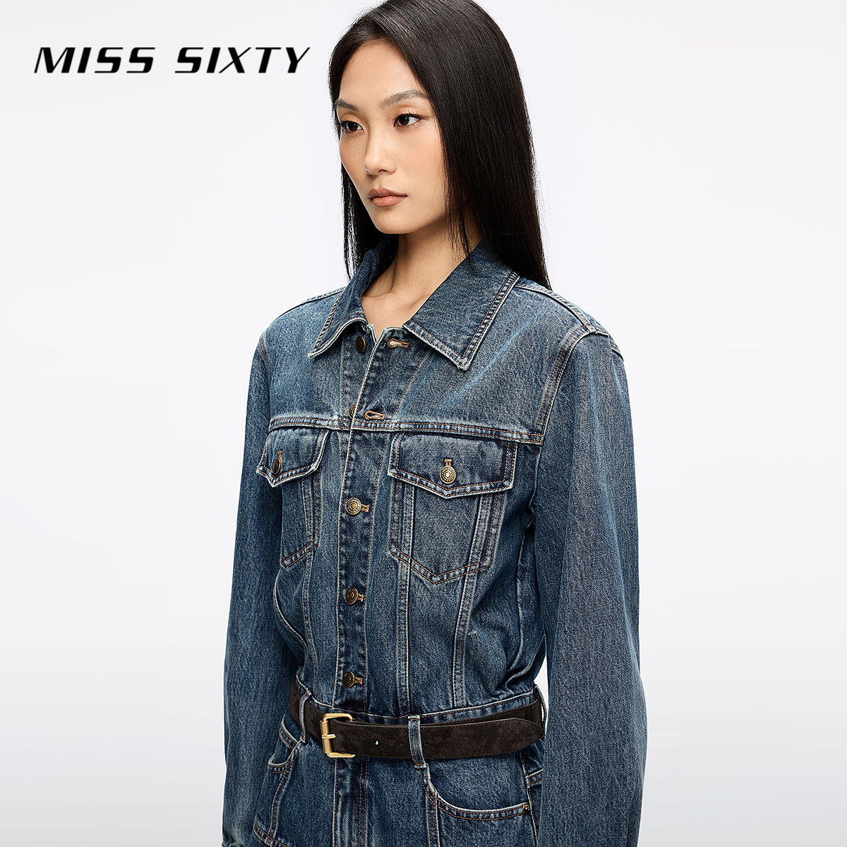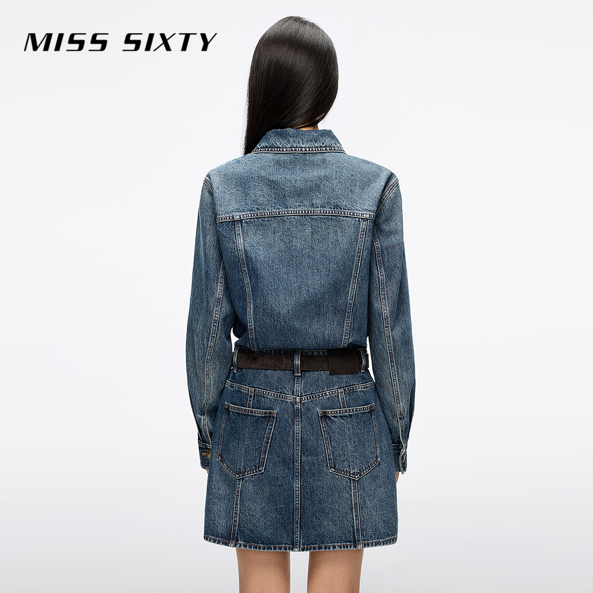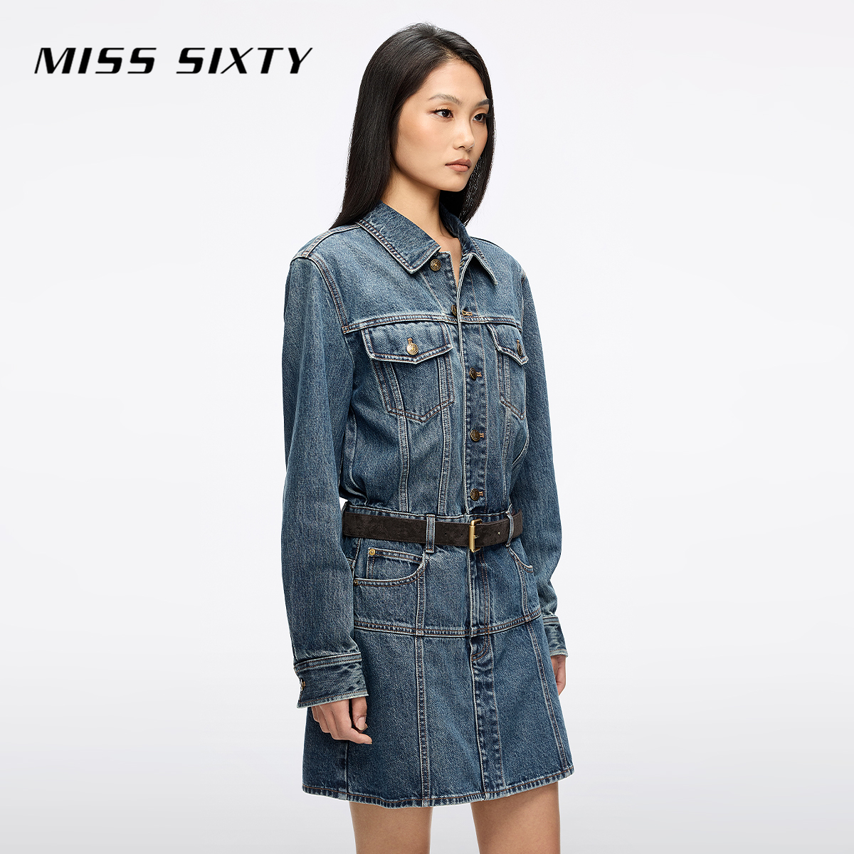 设计师款 佐丹奴抽绳收腰纯棉牛仔拼接条纹假两件连衣裙女18465222