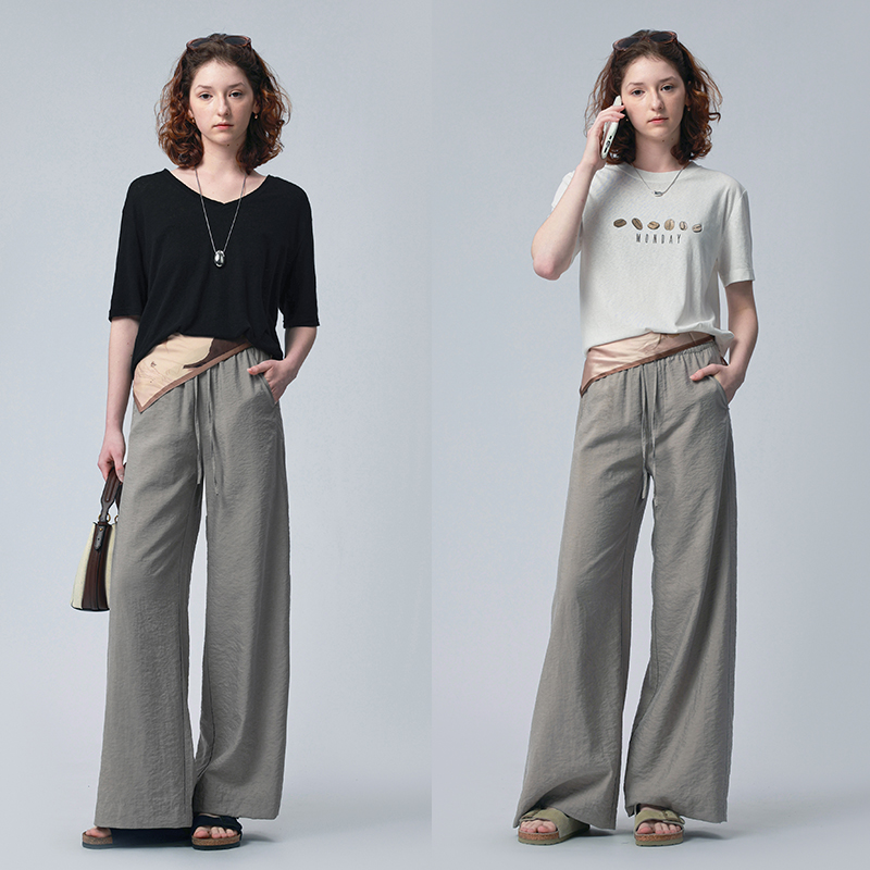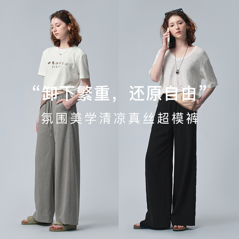 子女夏薄款 欧小仓茶冻系列 阔腿裤 清凉干爽真丝锦长裤 轻奢超模裤