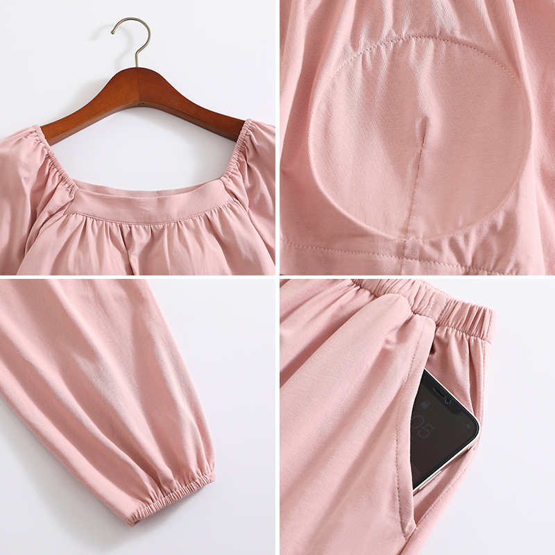 长袖 全棉大码 套装 女款 家居服 简约休闲秋季 芬腾春秋睡衣女纯棉开衫