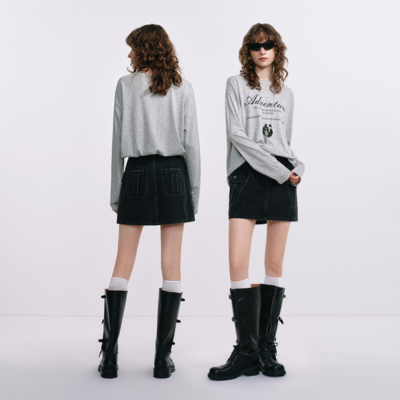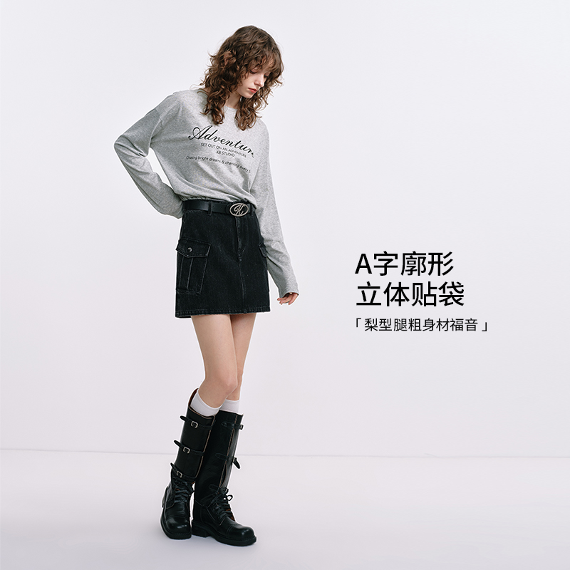 学院风百搭通勤短裙 新款 KBNE黑色水洗牛仔短裤 气质半身裙女25秋季
