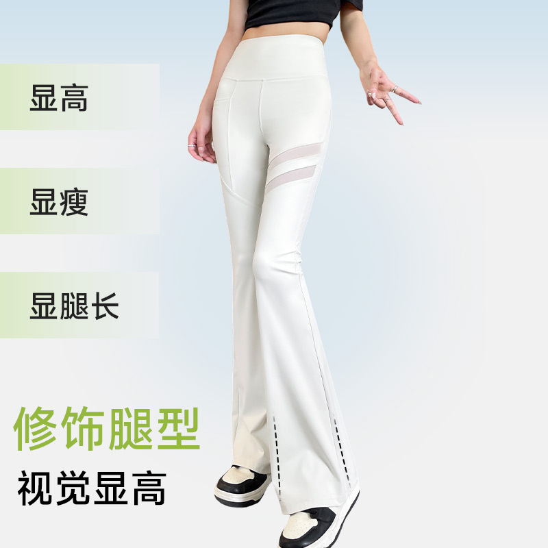 冰丝高腰提臀紧身白色健身瑜伽喇叭裤 薄款 子 女外穿夏季 微喇鲨鱼裤
