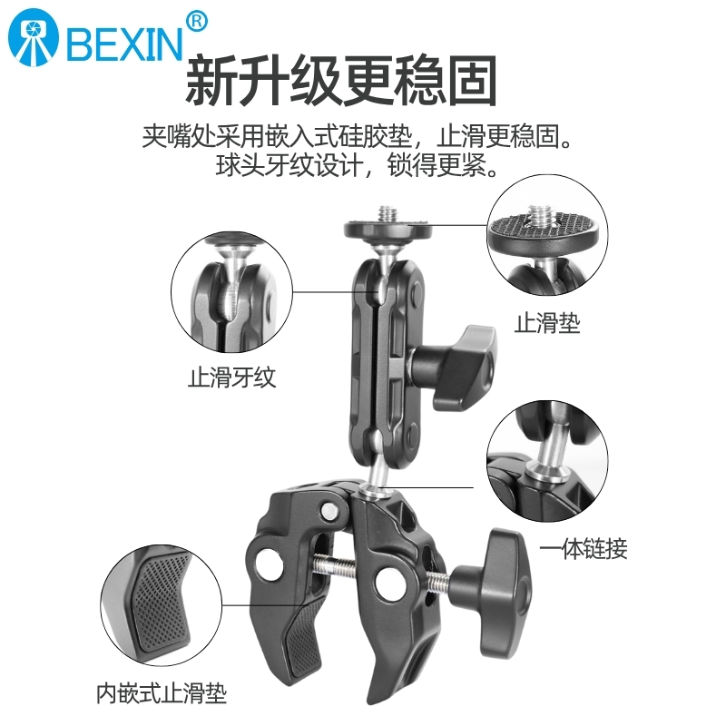蟹钳夹单反相机固定夹怪手多功能外接补光灯监控器U型大力豌豆夹云台金属万向魔术手C型夹直播摄影支架配件