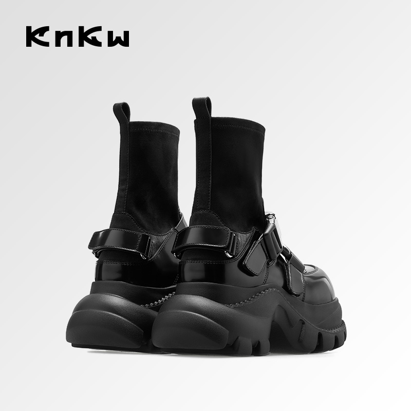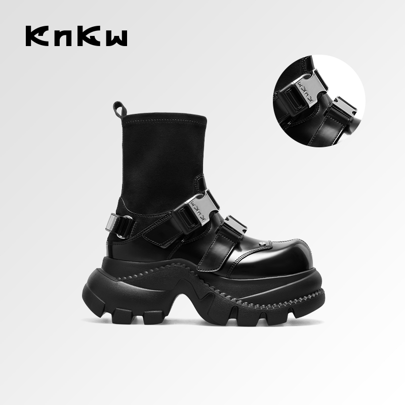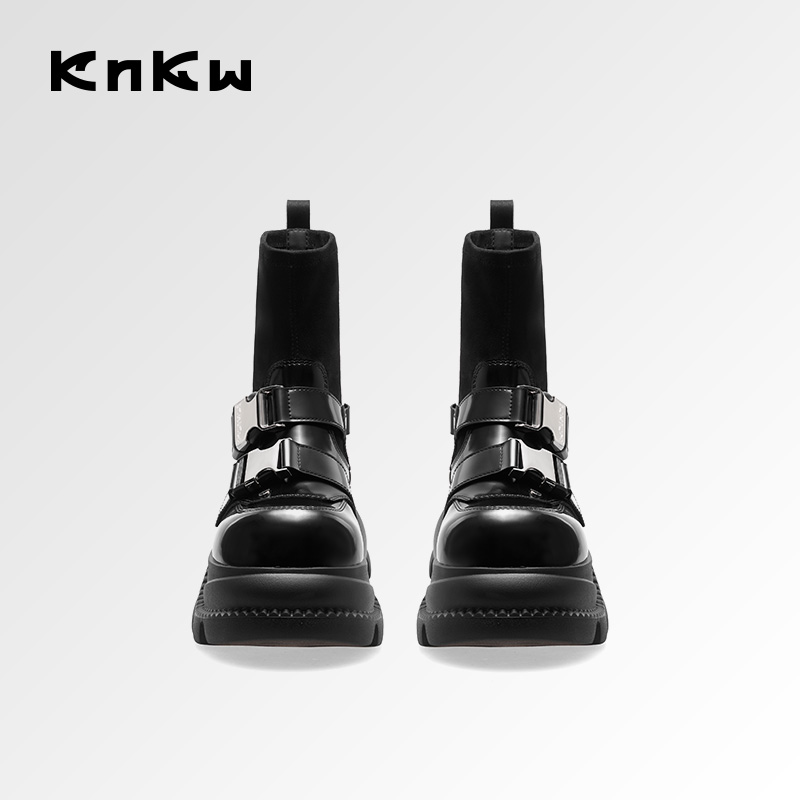 厚底黑色英伦时装 新款 knkw流光机能酷飒短靴秋季 靴 张雨绮同款