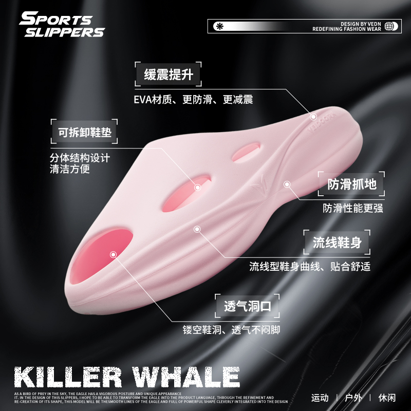 游泳防滑户外沙滩鞋 外穿凉拖厚底运动拖鞋 2.0男夏季 维动虎鲸拖鞋