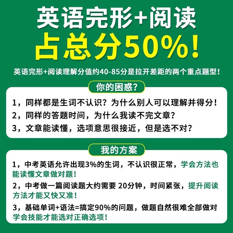 2026新一本英语完形填空与阅读理解听力七八九年级一本旗舰店小学升初中阅读中考专项训练中学教辅书文言五合一正版 满分古诗文词汇