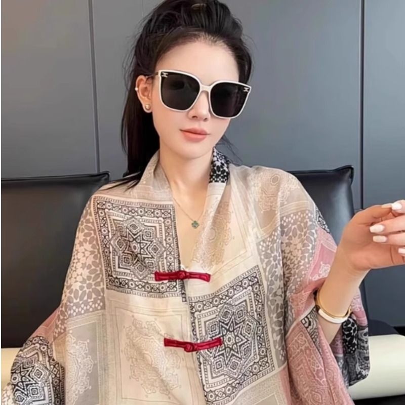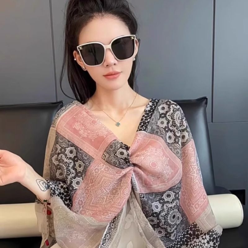 夏季 披肩女多功能云南旅游日常空调房海边沙滩丝巾斗篷女外搭 薄款