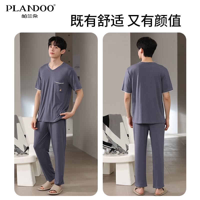 青年抗菌抗静电加大码 芬腾男士 套装 纯棉春秋季 全棉家居服 睡衣长袖