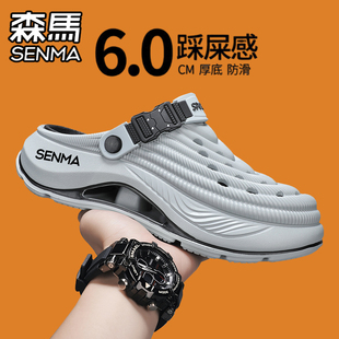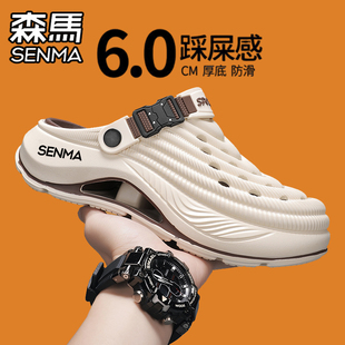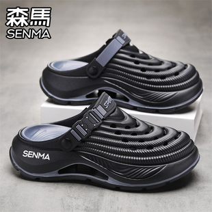 沙滩凉鞋 森马洞洞鞋 厚底运动增高大码 外穿防滑防臭包头拖鞋 男夏季