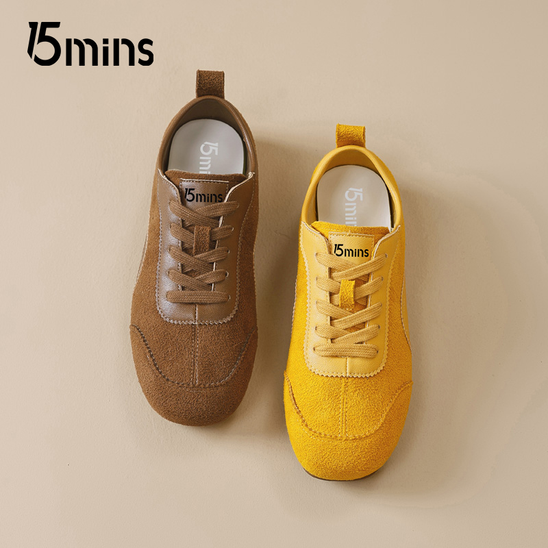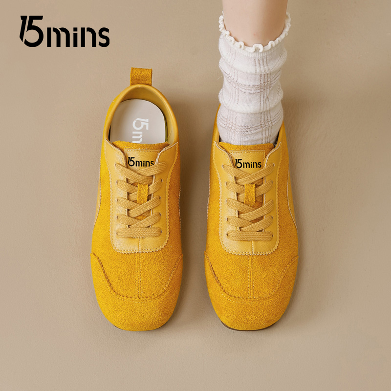 女系带休闲运动鞋 15mins黄色德训鞋 复古薄底赛车鞋 新款 女2025秋季
