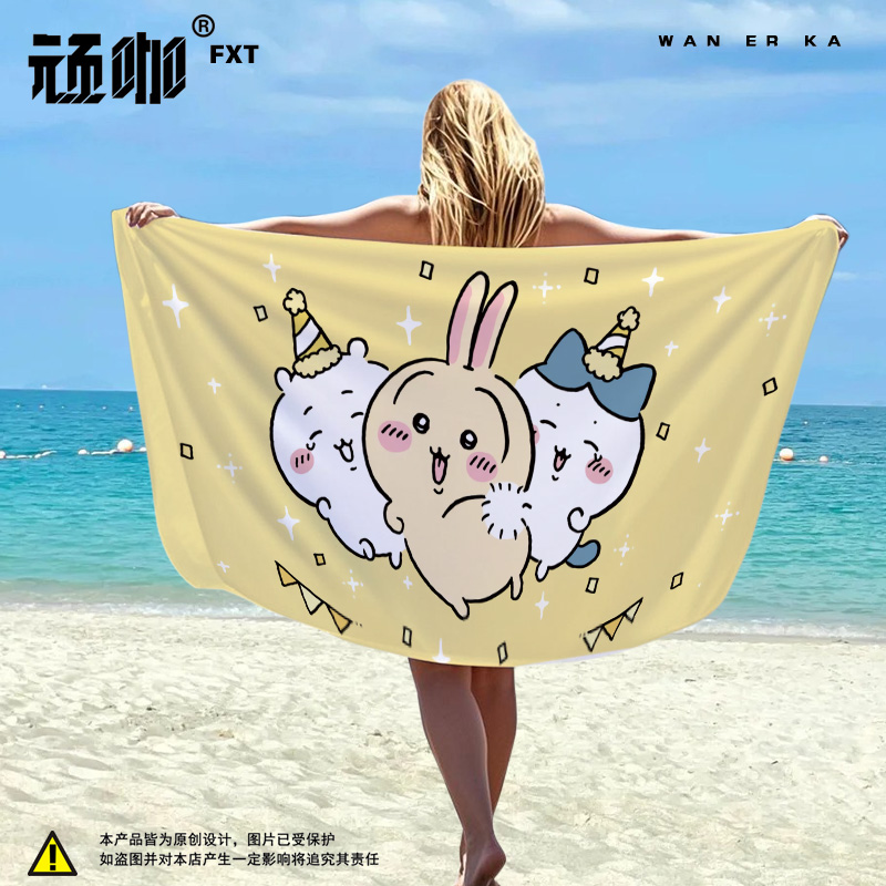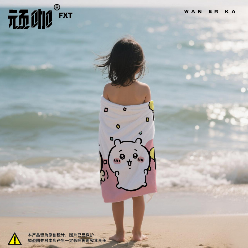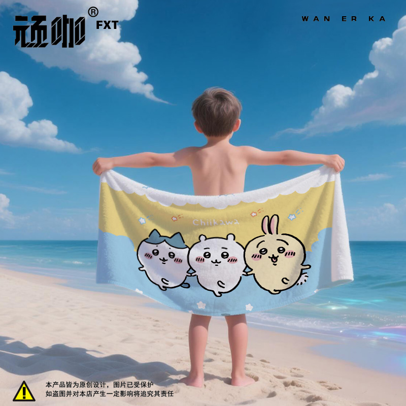 chiikawa吉伊卡哇儿童浴巾毛巾沙滩游泳巾游泳毛巾儿童海边沙滩巾
