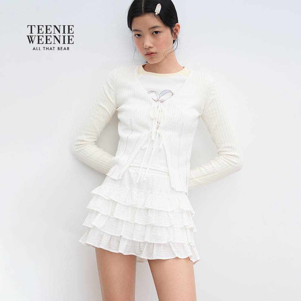 针织 四季 TeenieWeenie小熊女圆领绵羊毛衣开衫 赵露思同款