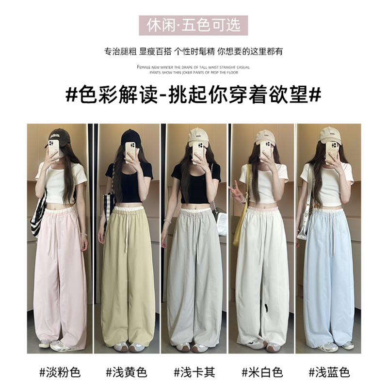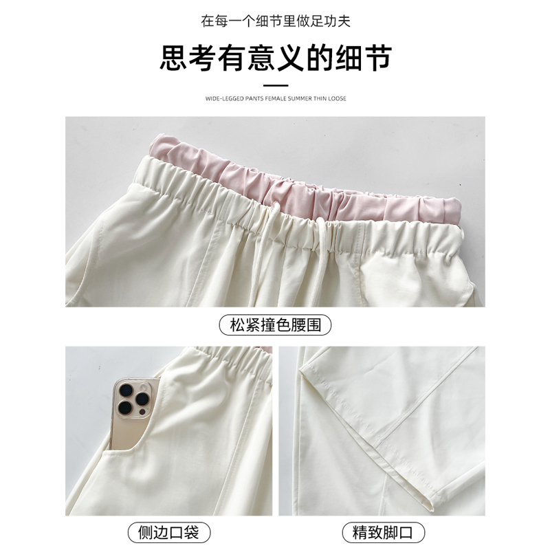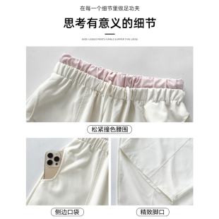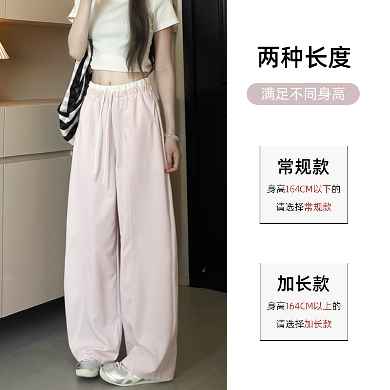 高腰撞色宽松显瘦小个子冰丝休闲气球运动裤 粉色拼接阔腿裤 女夏季