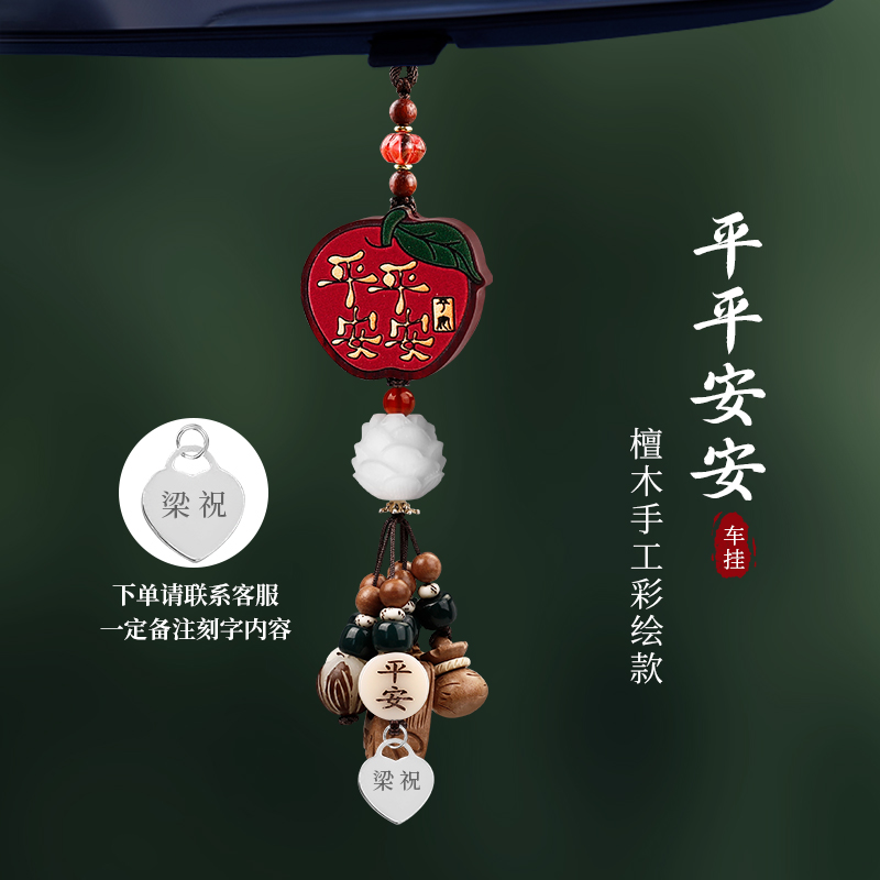 檀木汽车挂件高档车内饰品平平安安苹果车载后视镜吊坠2025年新款
