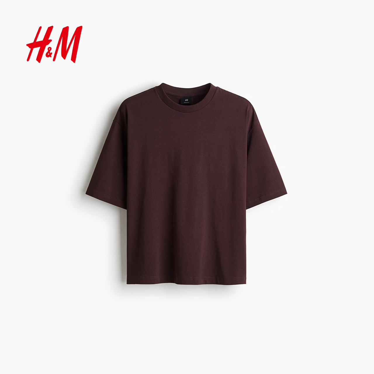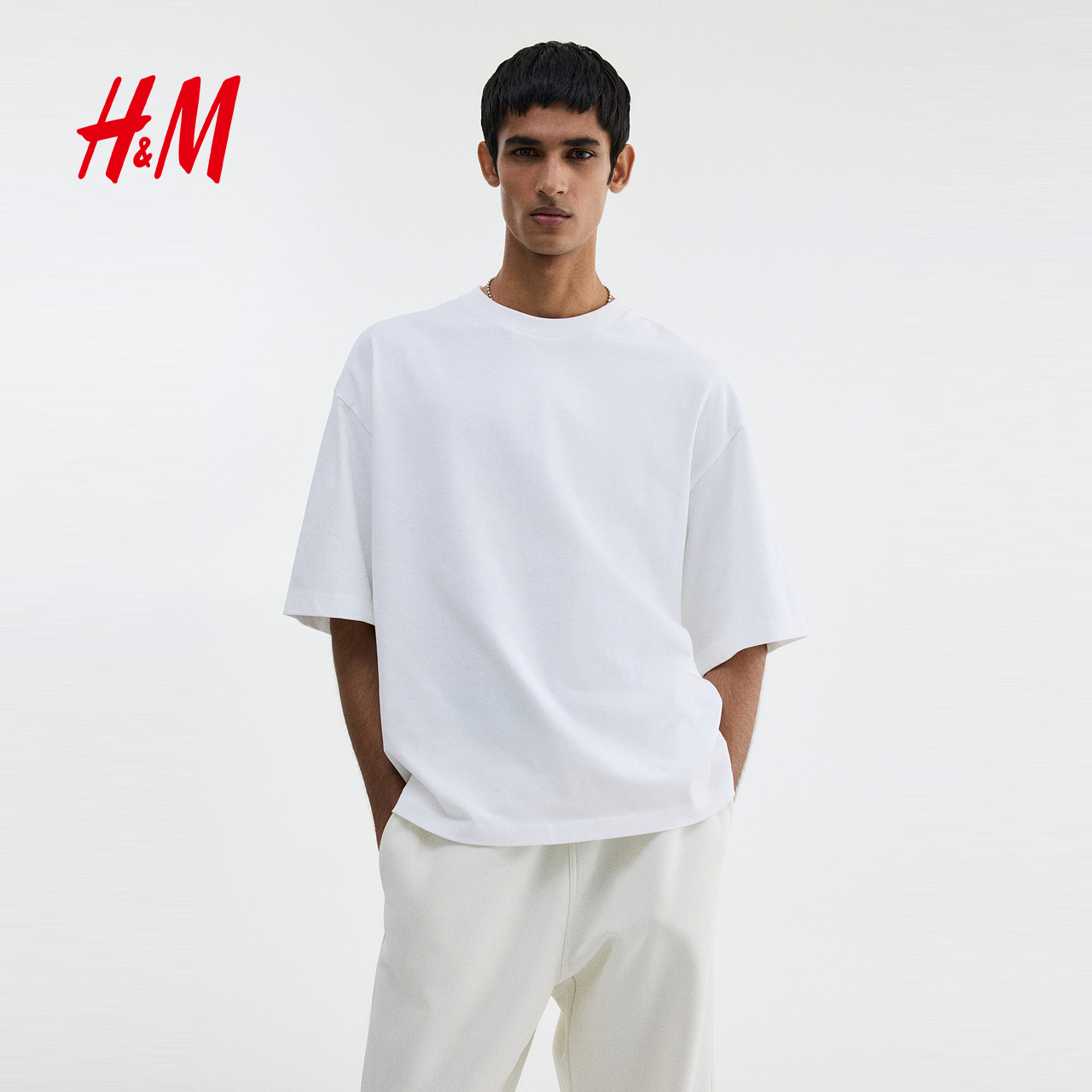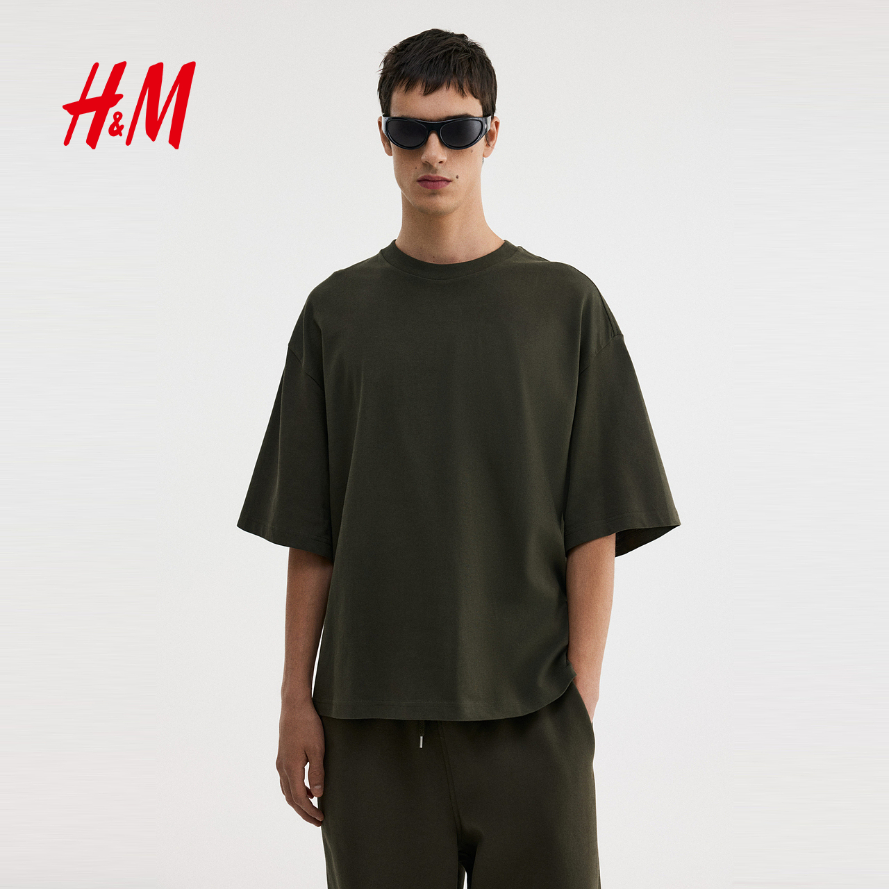 时尚 HM男装 内搭圆领大廓形短袖 新款 休闲上衣1294399 T恤2025年秋季