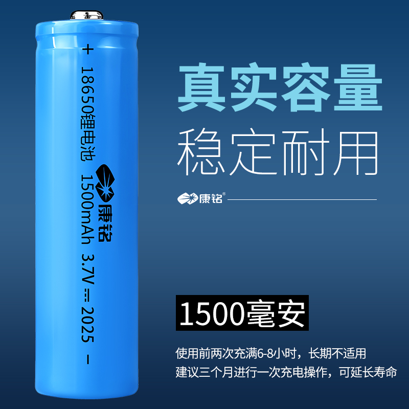 康铭18650电蚊拍锂电池1500毫安充电式 家用尖头可拆卸小风扇电池