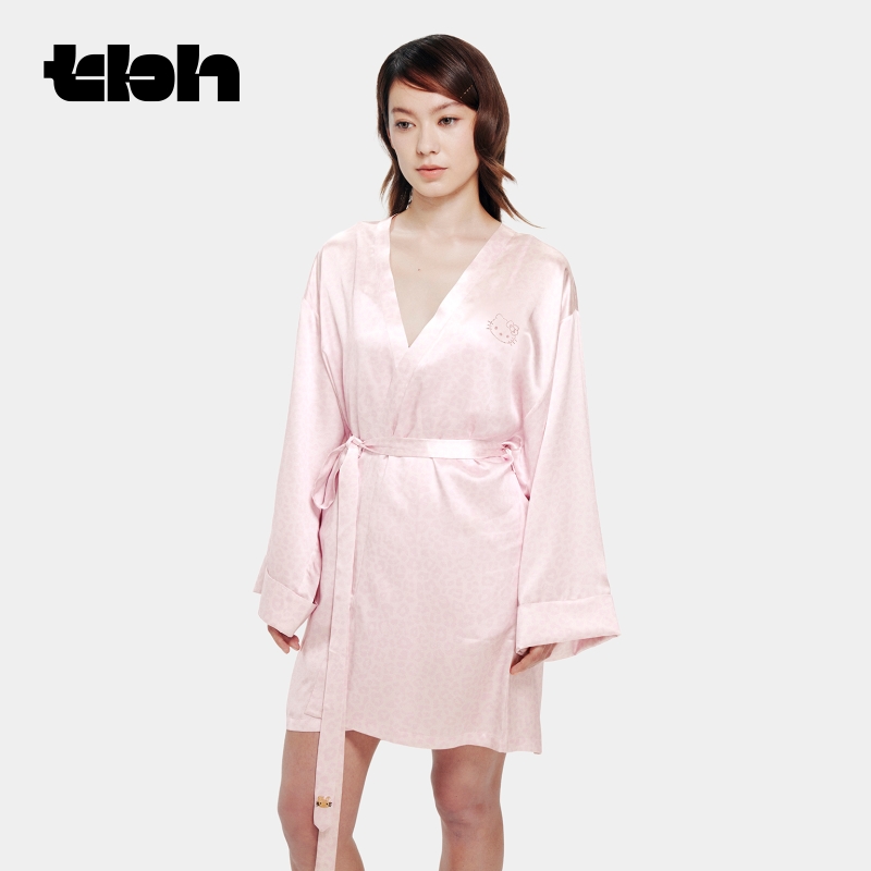tbh野兽派家居Hello Kitty烫钻真丝家居晨袍可外穿家居服睡衣睡袍
