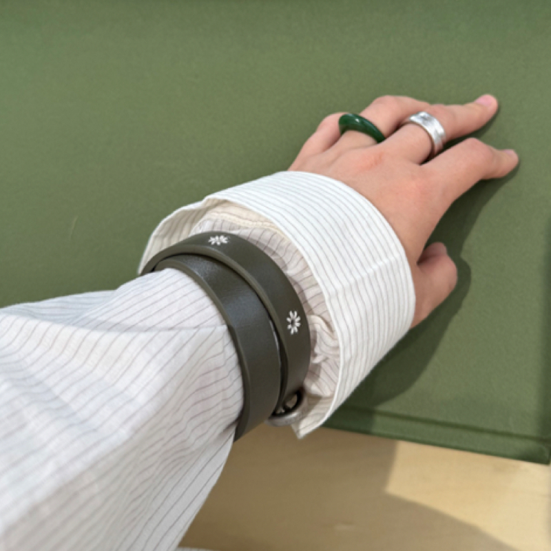 the molecule双圈皮手镯手工刺绣小花头层牛皮品质手环 pleasure