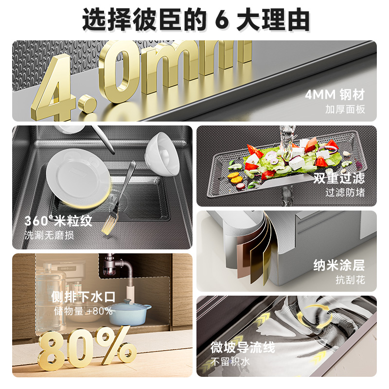 悍高厨房纳米水槽手工单槽304不锈钢灰色洗菜盆洗碗盆大单盆套餐