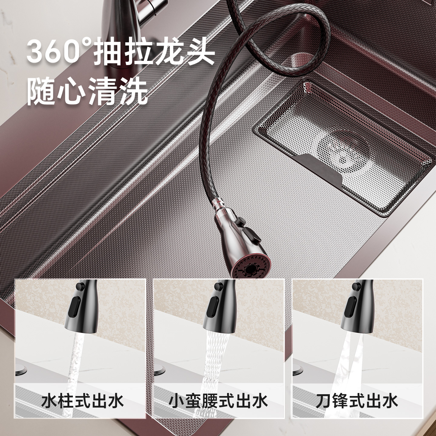 悍高厨房纳米石纹水槽手工单槽304不锈钢洗菜盆洗碗盆大单盆套餐