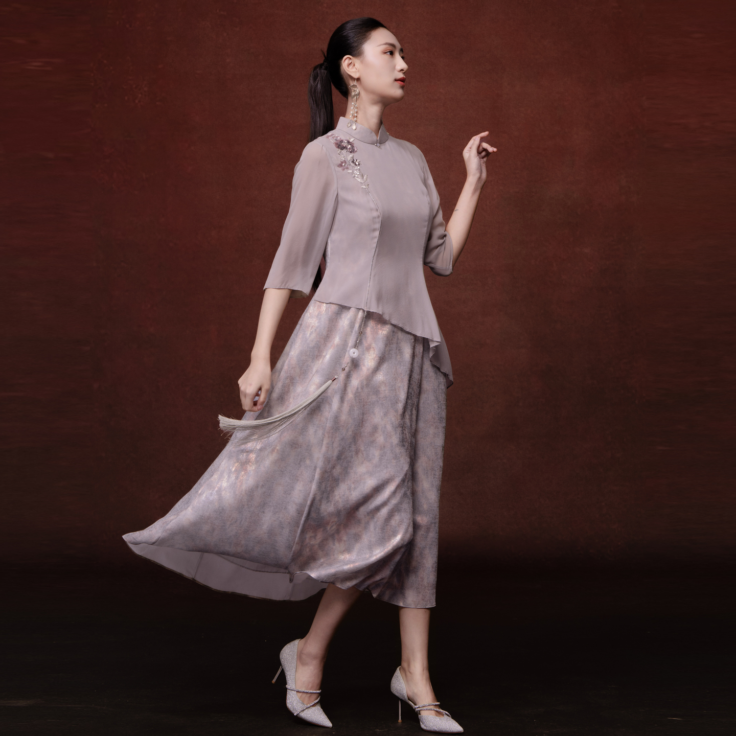 新中式 女成人日常可穿国风改良旗袍上衣连衣裙两件套茶服 汉服套装