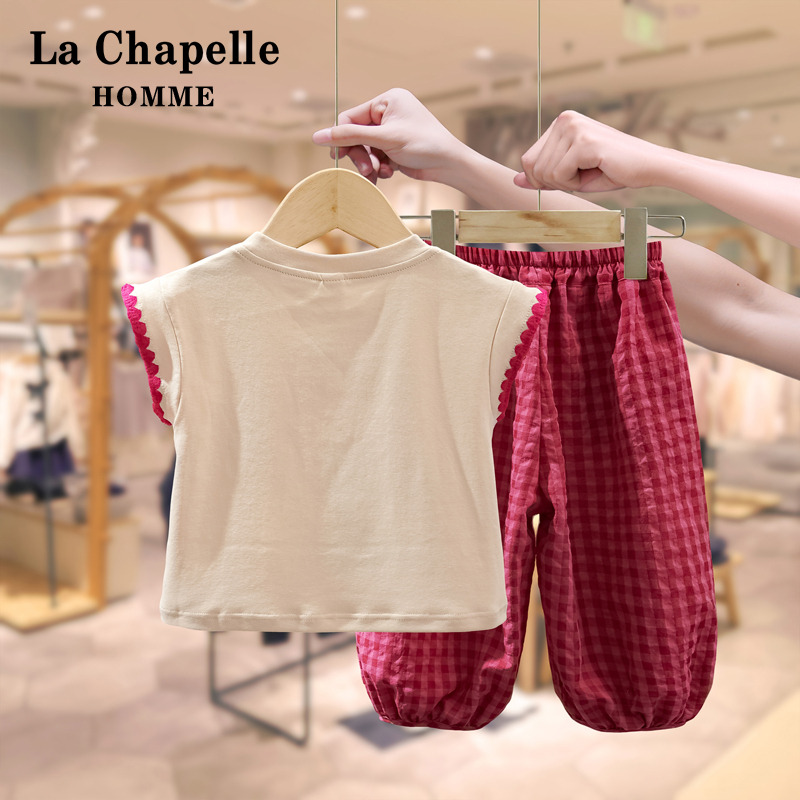 女童夏季 格子裤 套装 儿童宝宝洋气无袖 两件套 2025新款 拉夏贝尔童装