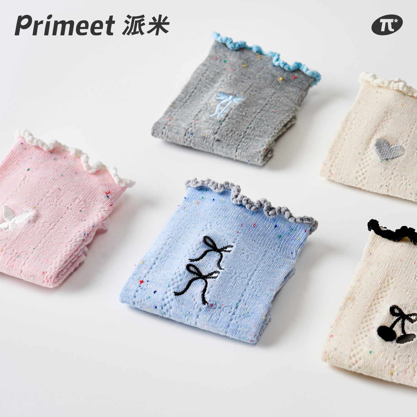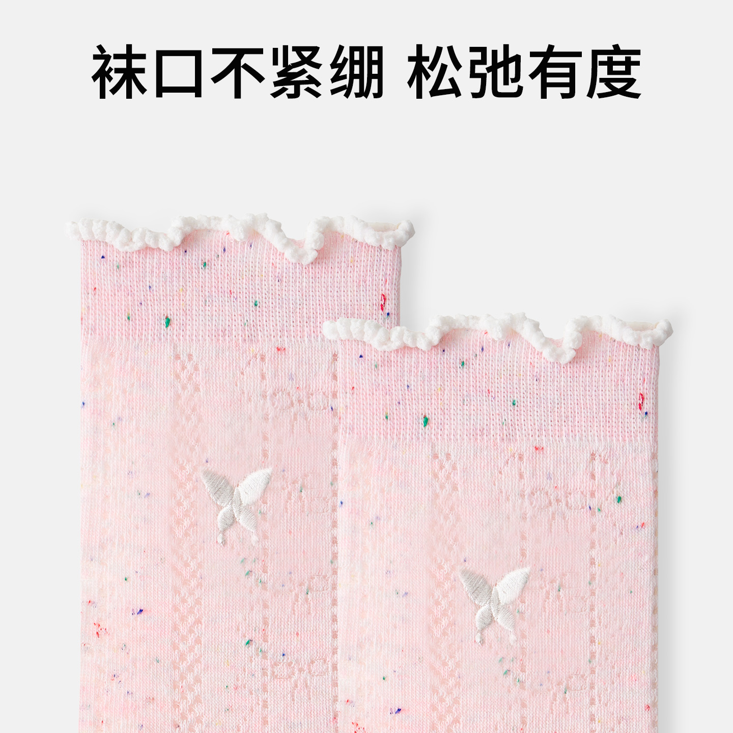 派米袜子女夏季 透气网眼花边蝴蝶结中筒袜miu系纯色刺绣棉袜 薄款