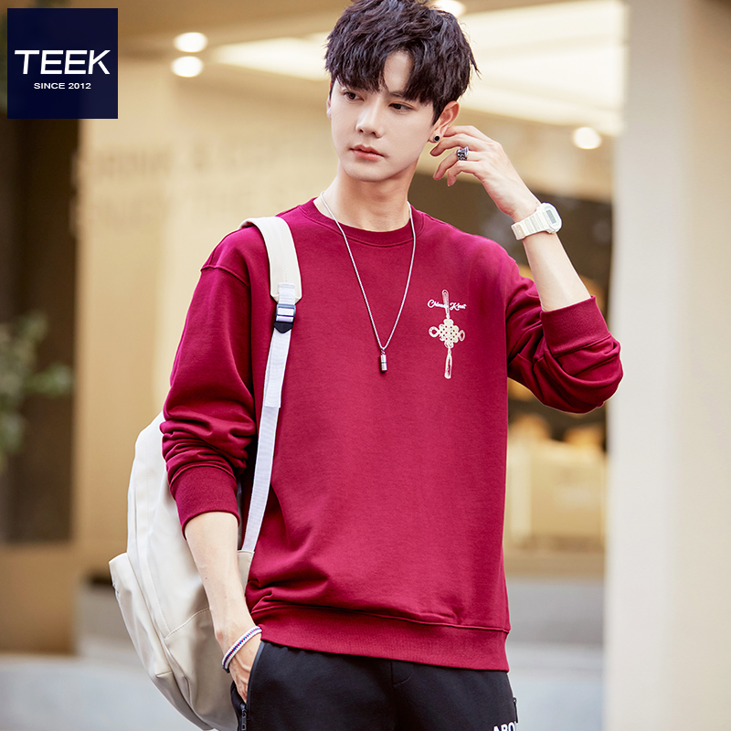 马年本命年红色加绒衣服 卫衣2026秋季 喜庆中国结春秋款 酒红色男装