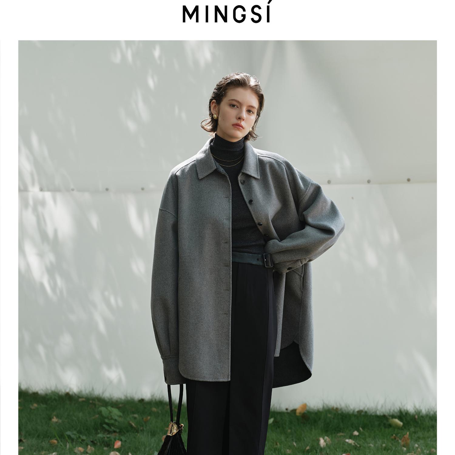 秋水伊人绵羊毛翻领大衣女慵懒毛呢外套 衣橱直播间 所有女生