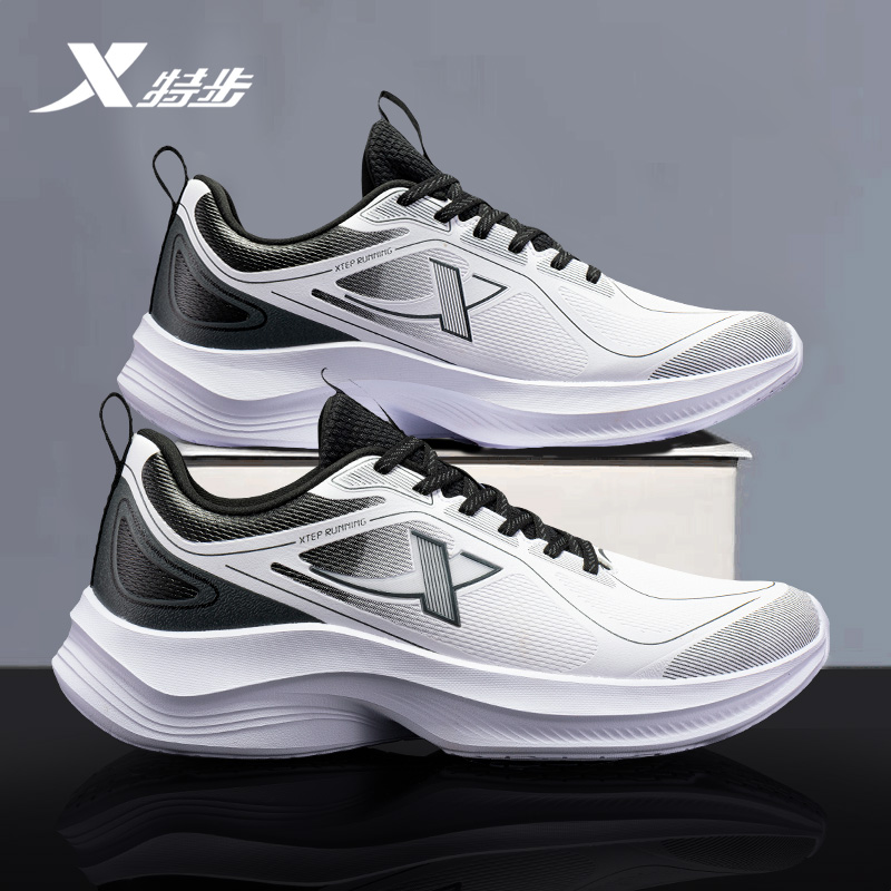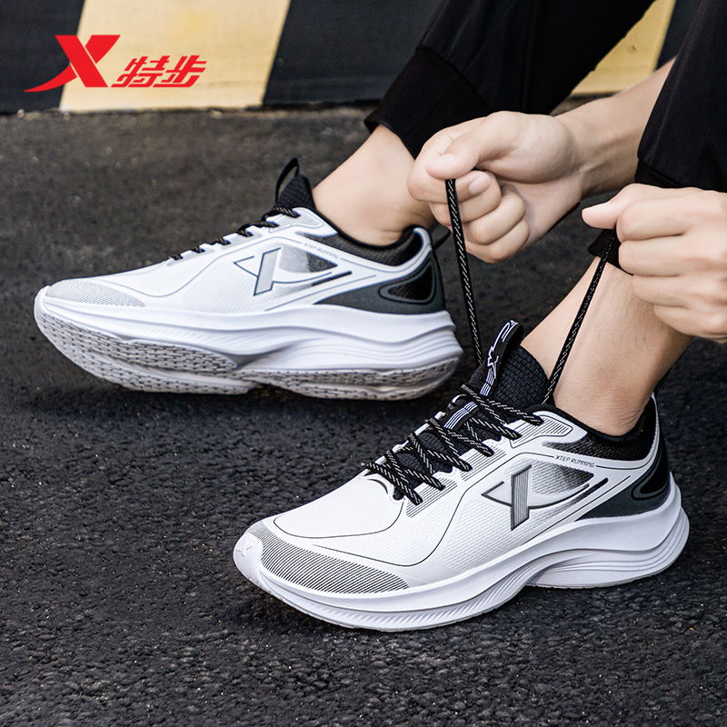 子皮面防水运动鞋 特步男鞋 官方旗舰店休闲跑步鞋 2025新款 透气秋季