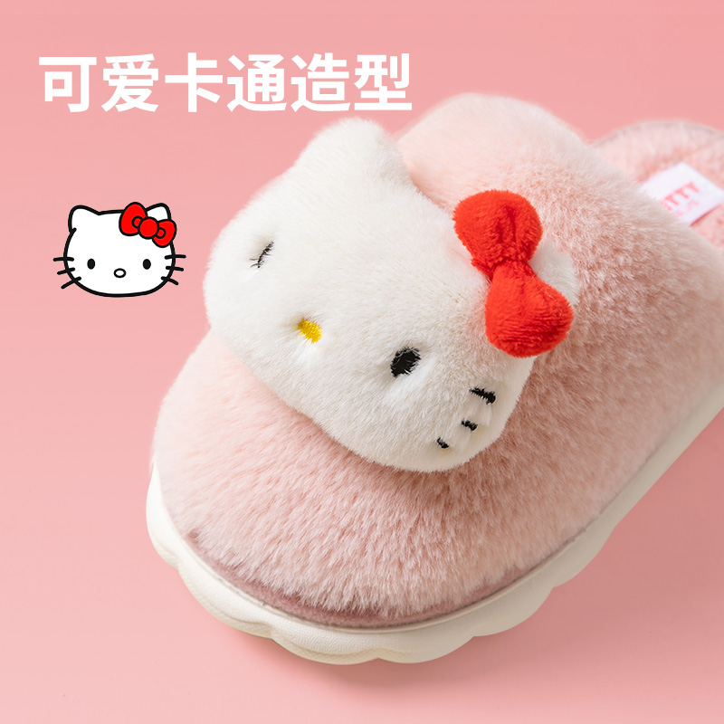 凯蒂猫女孩室内防滑三丽鸥宝宝毛拖鞋 儿童棉拖鞋 女童秋冬2025新款