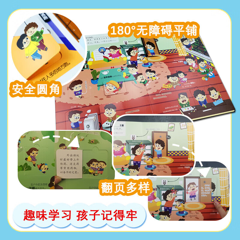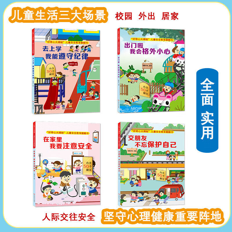 儿童安全教育翻翻书 在家里我要注意安全 全4册 出门啦我会格外小心 交朋友不忘 揭秘儿童安全知识好奇宝宝科普绘本 好奇心大揭秘