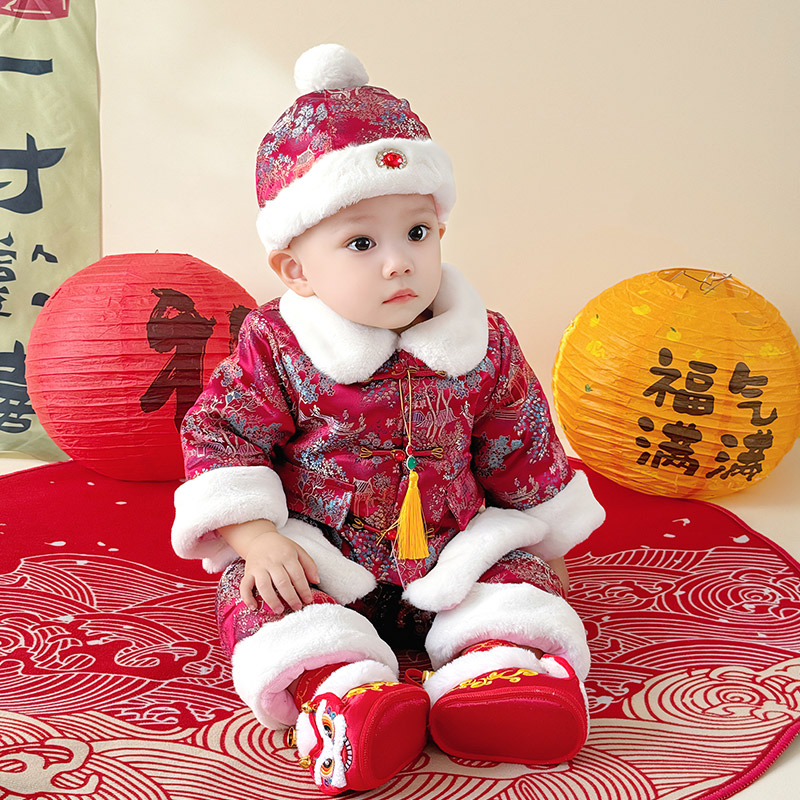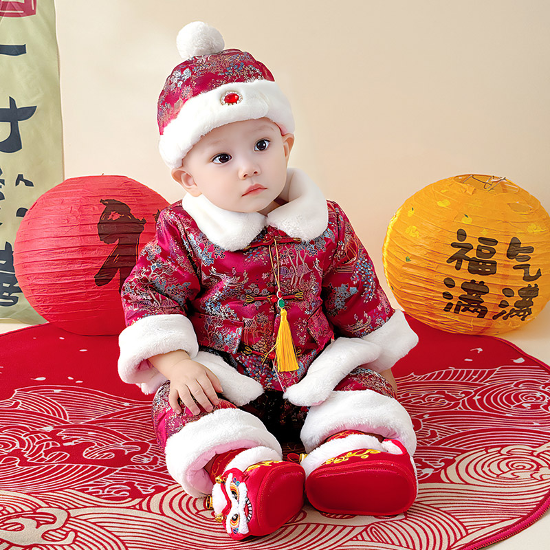 抓周礼服套装 唐装 百天过年服 冬装 宝宝拜年服女婴儿加绒加厚新中式