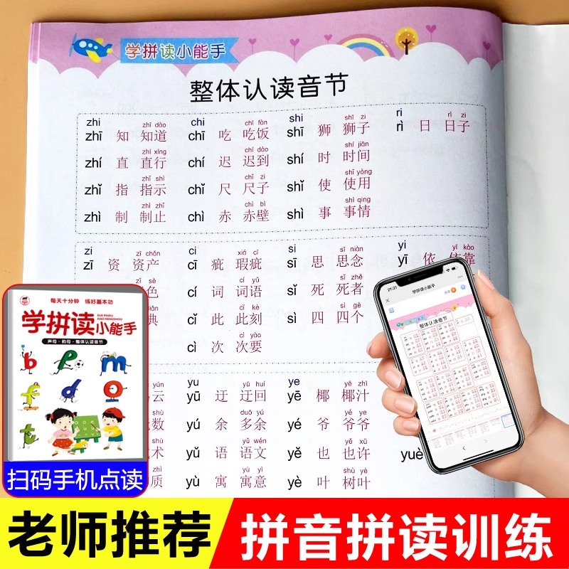学拼音拼读小能手幼小衔接专项训练学习神器幼升小一年级小学人教版 声母韵母练习教材拼读点读发声书读物幼儿园启蒙学前班汉语拼音